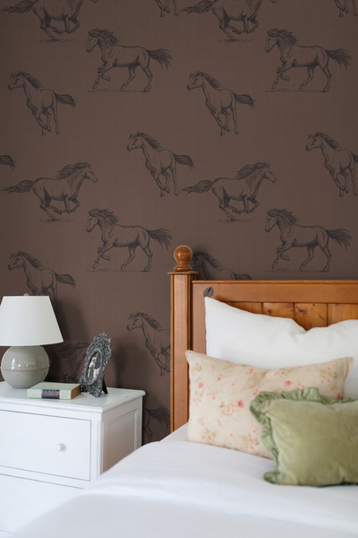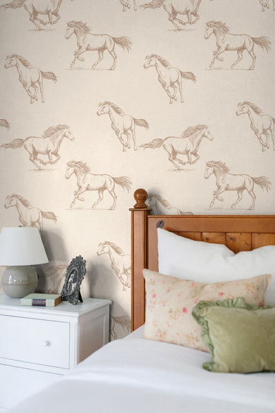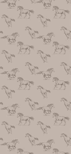 The Classic Horses Wallpaper is a design you would find in a quiet countryside home, hand-illustrated horses mid-stride, drawn with just enough detail to feel timeless without feeling ornate.
