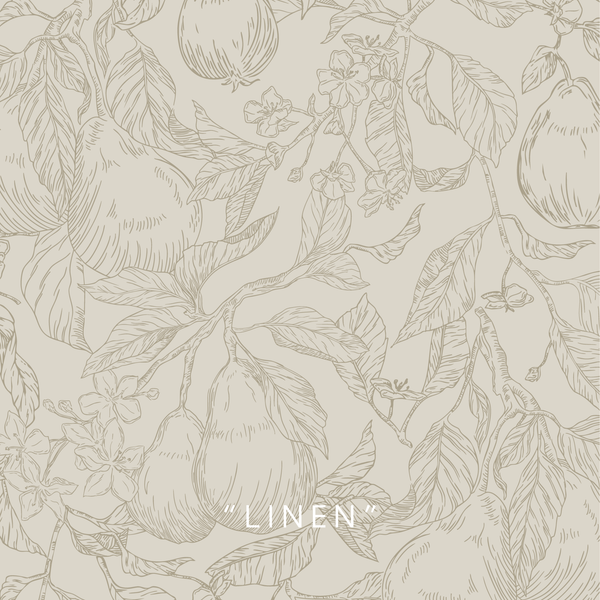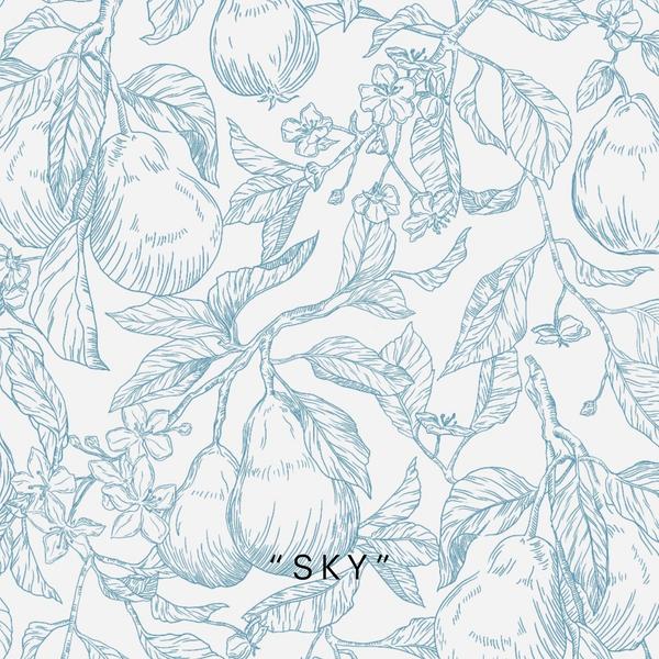 Immerse yourself in the tranquility of nature with our Flowering Pear wallpaper! Hand-illustrated with lush pears and delicate flower buds in a soothing blue and neutral color palette, this wallpaper captures the essence of organic beauty and modern elegance. Ideal for any room seeking a touch of sophistication, the Flowering Pear wallpaper creates a calming atmosphere, perfect for spaces where relaxation is key. This vintage looking floral pattern is perfect for a vintage cottage nursery, gender-neutral nursery or a feminine girls room. It's also got a modern farmhouse feel to it, being a perfect addition to an English-inspired heritage home hallway or living room, and organic modern bedrooms. Its understated yet elegant design makes it a versatile choice for a variety of home styles.